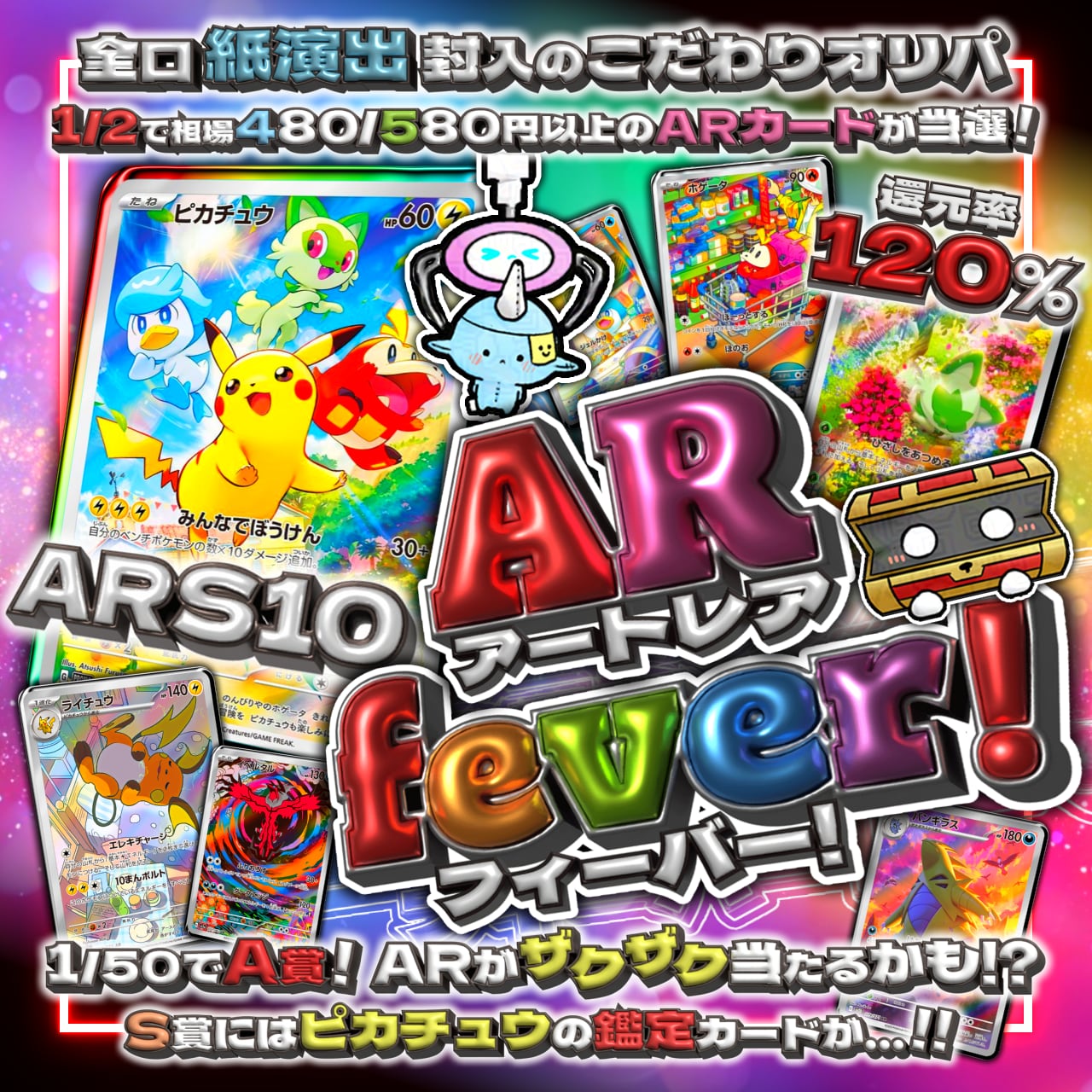 ☆もともと、500円/500口/還元率105%で販売していたAR FEVERを、引きやすく改良した結果、パッケージに105%という表記が残ったまま、120%で販売する形となりました。